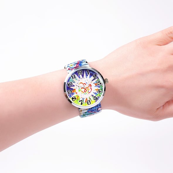 宇宙(コスモ)の創造を思わせるようなグラフィック柄です。細かで繊細なのに、ダイナミックな構図が魅力。まさにスペインらしいアート的なデザインです。カジュアルな大きめフェイス&見やすい大きい数字の文字盤もおすすめです!またゴムの様に伸びるジャバラバンドは、着脱がラクラク♪おしゃれで使いやすい腕時計が、1万円台なのでプレゼントにも◎レディースとしてもメンズとしてもお使いいただけます。